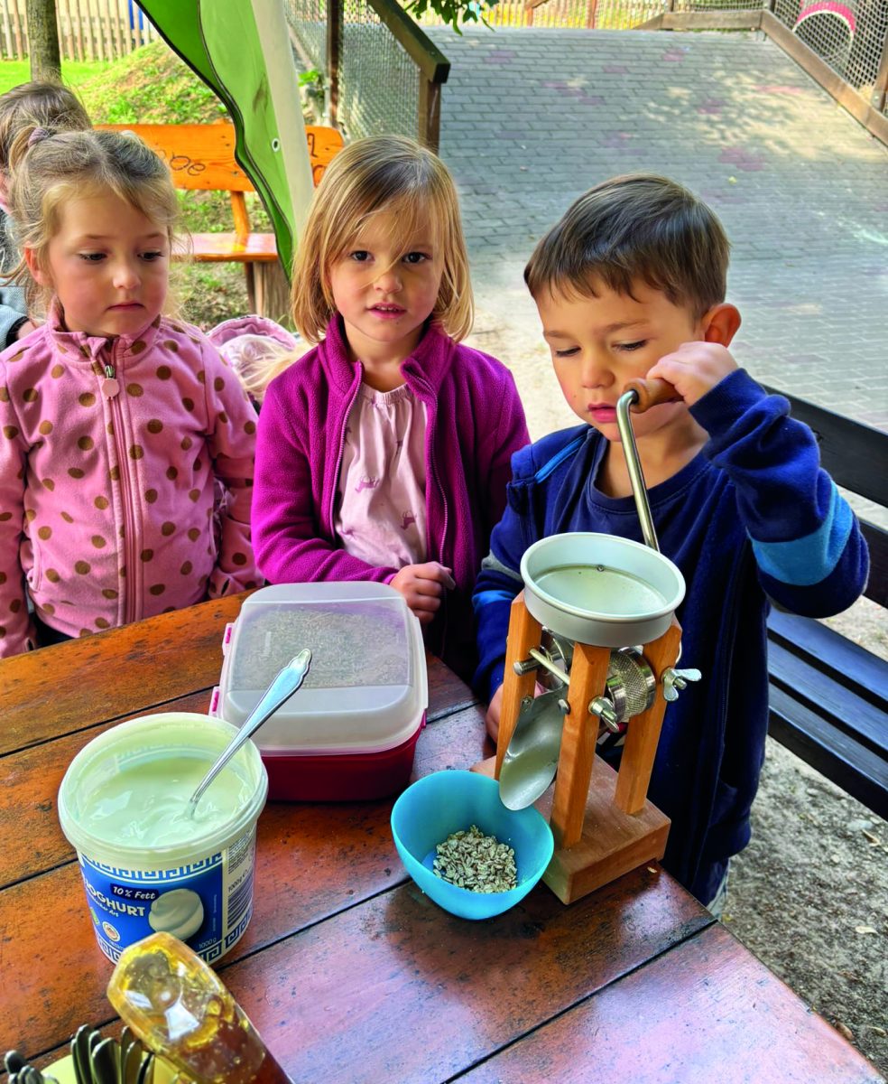 Unter dem Motto „Vorbeugen ist besser als heilen!“ praktizieren wir im Umgang mit unseren Kindern Methoden der gesunden Lebensweise. Gesunde Ernährung wird bei uns groß geschrieben. Unterstützt von den Eltern bieten wir eine tägliche Obstpause an. Gemeinsam mit den Kindern bereiten wir Obstsalate zu, bauen im Garten Gemüse an und pflegen unsere Kräuterbeete. Tägliche Bewegung an frischer Luft sorgt für Abhärtung. Für die körperliche Fitness sorgen wir mehrmals wöchentlich in speziellen Arbeitsgruppen mit sportlichen Inhalten.